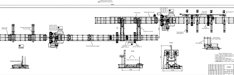 3-in 1-h-Strahlschweißleitungen haben als kombinierte Funktion der H-Strahl-, T-Strahl-Montage-, Schweiß- und Flanschverformung nach dem Schweißen. Daher kann es die Produktion von H -Strahl und T -Strahl genau und schnell realisieren. Es hat die folgenden Vorteile: einfache Betrieb, weniger Arbeitskosten und kleine Abdeckungsfläche.